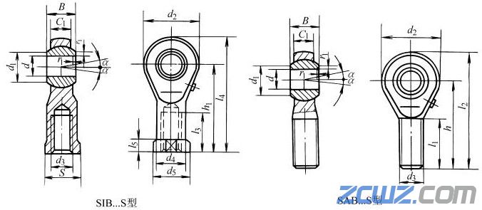 SIB…S、SAB…S型杆端关节轴承的结构型式和外形尺寸