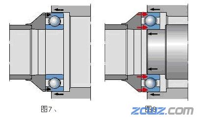 9、 轴承箱(座)为过盈共同:运用矿物油细微光滑轴承的外圆外表。装置时,确保轴承装置后与轴承箱(座)垂直,运用适宜的套筒施力在外圈(图7)。
