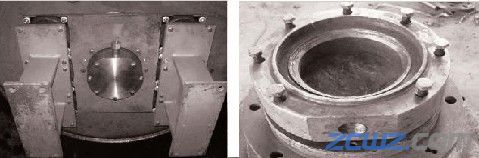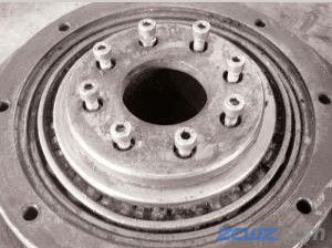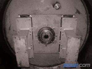4、松开轴承挡板上的八颗固定螺栓,并把挡板卸下;