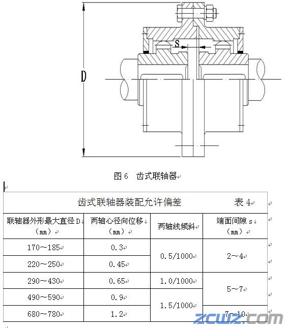 五、 齿式联轴器(图6)装配时应符合下列要求: