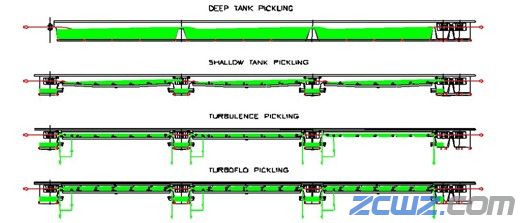 c 紊流酸洗线:在每个酸洗槽内仅在带钢上面仅有两个紊流区域。然而在各酸洗槽的出口需要较大能源进行密封。