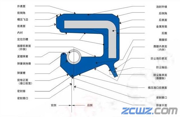 唇部:一般油封的唇部是斜楔状,在唇端部按压轴表面,起到密封流体的作用。