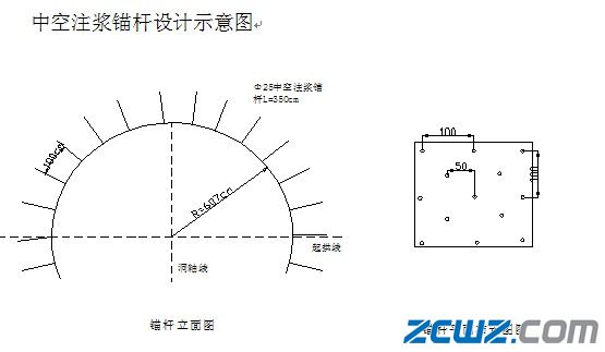 (2)中空锚杆注浆参数:采用30号水泥浆液,水灰比1:1(重量比),注浆压力:0.5~1.0Mpa。